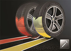 The FlexContact Technology used for the EfficientGrip Performance SUV, has a shock absorbing cushion layer compound which lowers tyre vibration in order to reduce the impact of road irregularities, providing for a smoother and more comfortable drive.