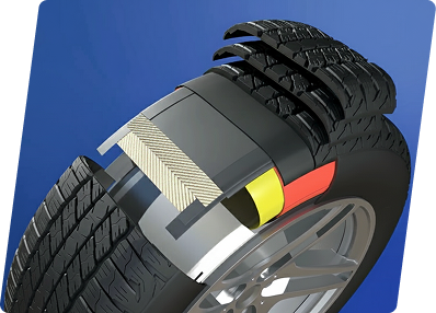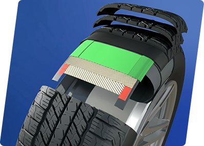 The reinforced material of carcass cords provides increased resistance to potholes and impacts.
